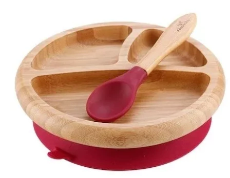 Plato Antideslizante Bebé Madera Bamboo Bambú Y Silicona Con Cuchara Avanchy Vajilla